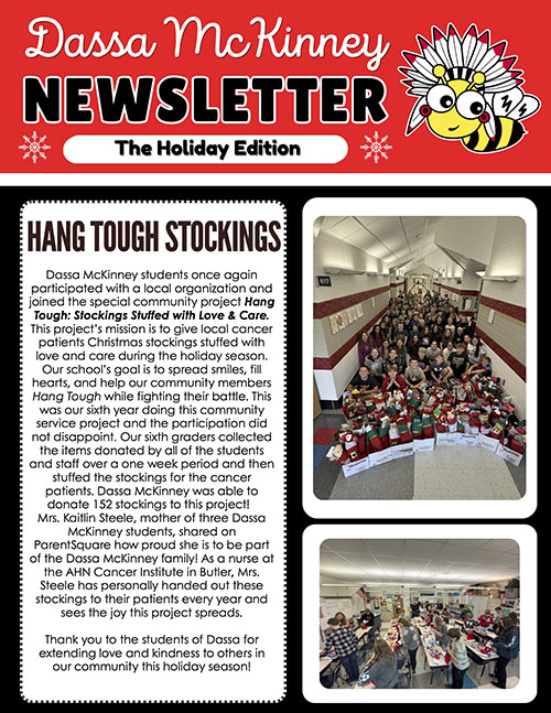 Dassa McKinney Elementary School has released its holiday newsletter, sharing seasonal updates, celebrations, and important reminders with families as the year comes to a close. For more information, please read the entire holiday newsletter.